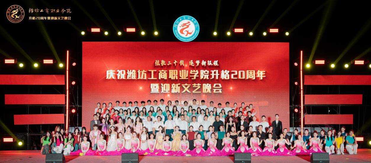 当晚,学校在体育场举办了“庆祝潍坊工商职业学院升格20周年暨迎新文艺晚会”,以丰富多彩的文艺节目展现学校二十年来发展建设成果,喜迎2025级新生。