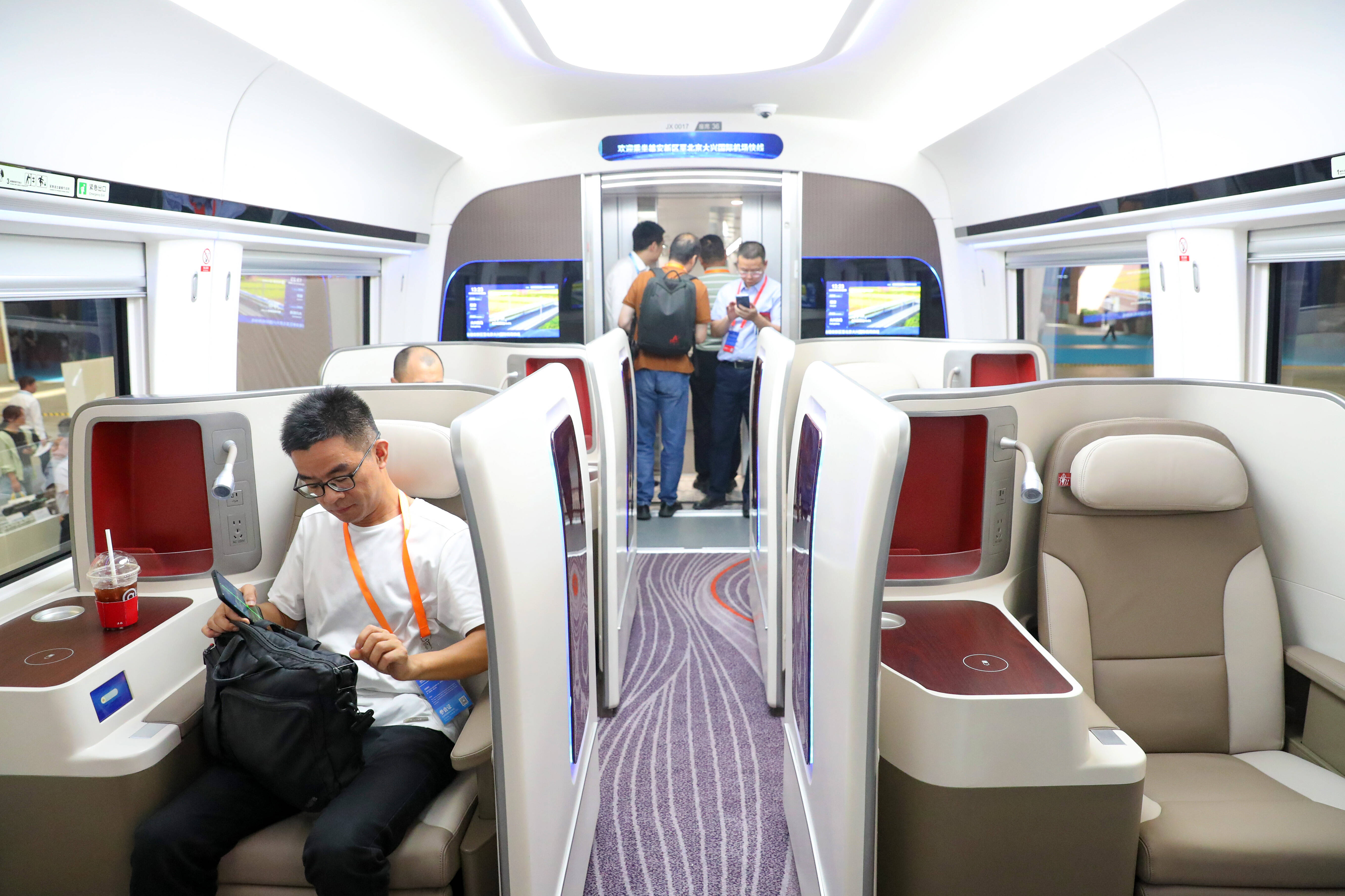 参观者在智能市域列车内体验。