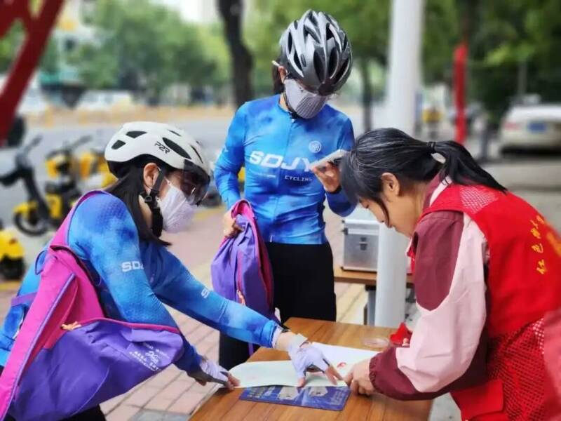 9时30分,随着发令枪响起,骑行活动正式展开。200名爱好者分成两组,分别沿“烟火人间,城市记忆”与“寻味历史,探索老城”两条主题路线进发。“烟火人间”线路串联泰安丽景社区、希贤社区、花园社区等16个社区及多家社区支行,让骑行者感受市井生活的温暖与活力;“寻味历史”线路则途经泰安岱庙南门、泰山夜市创业街区等文化地标,引领大家探寻老城的悠久历史。每个社区打卡点均设有工作人员为参与者加盖专属印章。大家一路骑行、欣赏风景、交流心得,氛围轻松愉快。