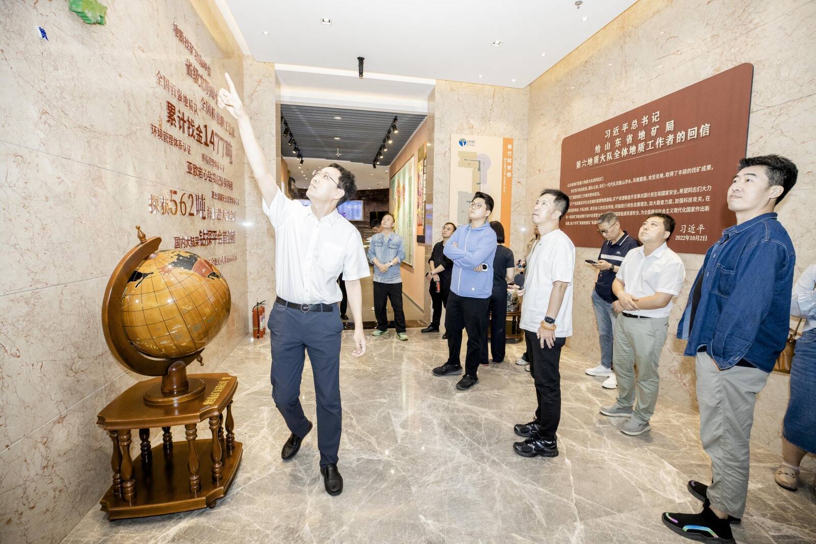 媒体团一行首先参观了山东地矿三队的地质陈列馆,听取了该队在地质找矿、地质钻探科研及施工、海洋地质等领域工作成果的介绍,实地观看千余件地质标本及勘查数据图谱,对地质工作专业能力和综合实力有了深入的了解。三队先后在金矿、石墨矿等战略性矿产资源勘探中取得多项瞩目成就,探获了亚洲最大海上金矿,首先发现的黄县煤矿成为全国唯一海底煤矿,提交当时全国最大石墨矿,提出了“辽上式”新型金矿成矿理论,先后荣获原地矿部地质勘查二等功、全国地质找矿“功勋单位”“全国百强地质队”“全国模范职工之家”等荣誉称号,荣获国家科技进步奖2项,省部级科学技术奖40余项。