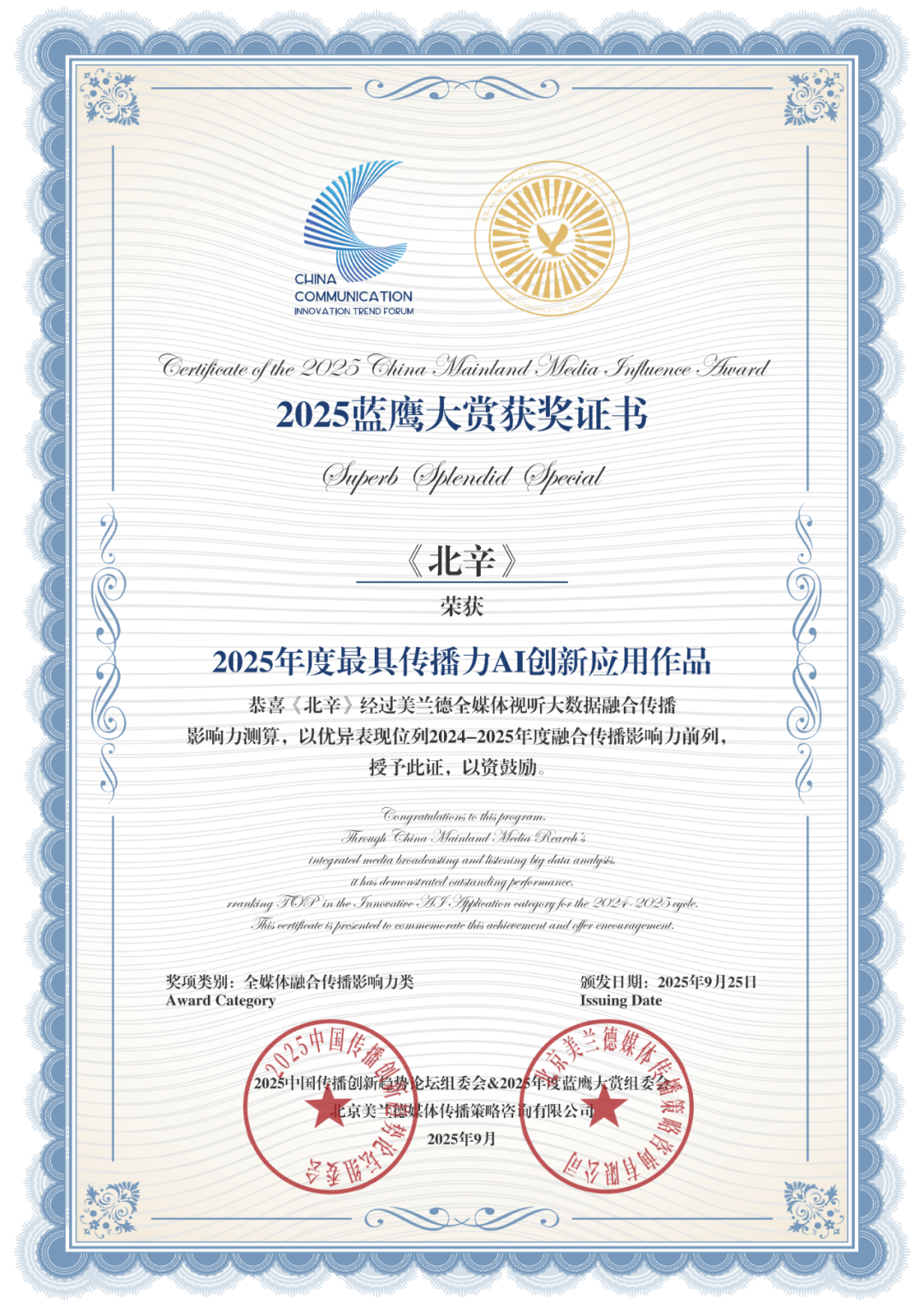 《北辛》获“2025年度最具传播力AI创新应用作品”。