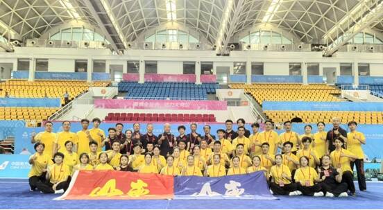 作为山东省体育局重点选调的参赛队伍,山东省太极八法五步队由郓城宋江武术学校与曲阜师范大学联合组建,在领队刘国庆(宋江武校副校长)、教练樊腾飞(曲阜师范大学武术中心主任)的共同带领下,于全国赛场自信亮相、从容应战,最终凭借过硬实力斩获 9.14 分的优异成绩,成功拿下二等奖,为山东争光,也为两校赢得了荣誉。