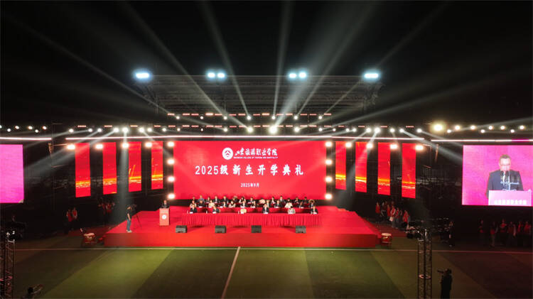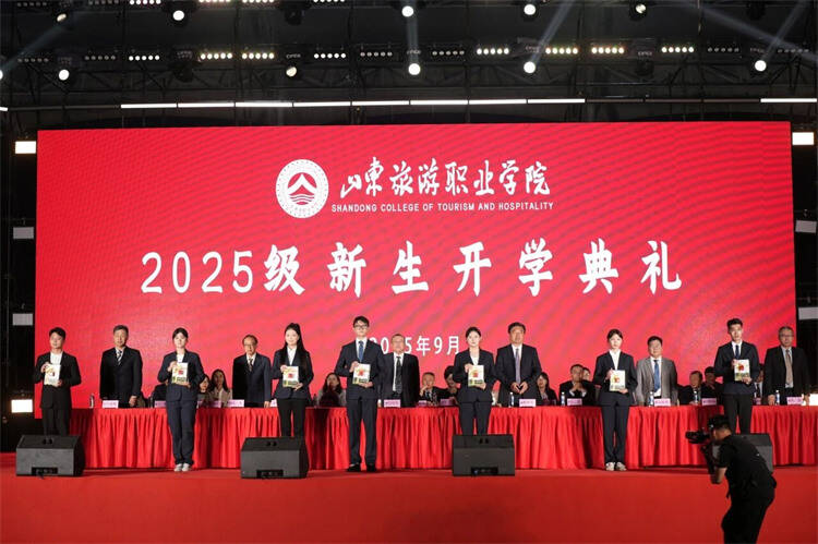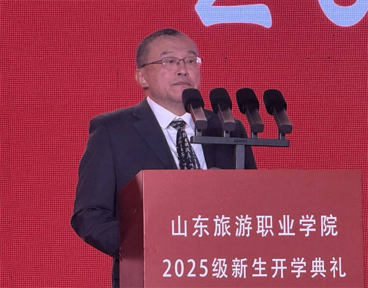 齐鲁网·闪电新闻9月29日讯 日前,山东旅游职业学院举行2025级新生开学典礼暨迎新晚会。3518名“小萌新”怀揣对文旅事业的热忱,在此翻开人生新一页,以 “山旅人” 的身份共同奔赴属于自己的梦想新征程。学院党委书记闫向军为2025级新生讲授开学第一课,学院领导邢学军、赵冰、马保烈、王建峰、肖磊以及各部门、各系部主要负责人共同出席开学典礼,党委副书记邢学军主持大会。