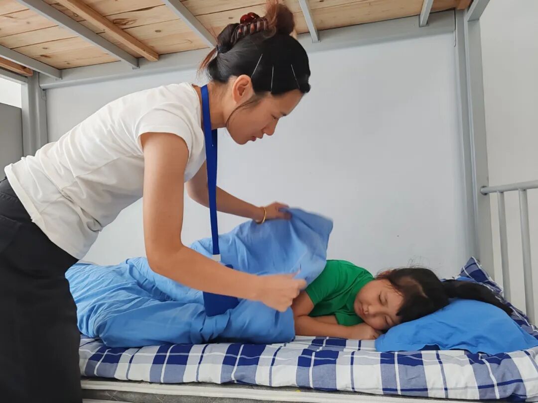 饭后,校园渐渐安静下来。在老师的组织下,同学们进入午休模式。拉上窗帘、闭上眼睛,孩子们在舒适的环境中放松身心,为下午的学习储备精力。值班教师轻步巡视,贴心盖被,守护每一份宁静。