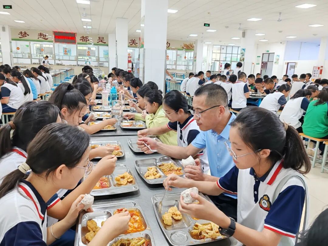 午餐时间,各校值班教师走进食堂,与学生们同桌就餐。“今天的菜你喜欢吗?”“要多吃点蔬菜哦。”老师们细心询问用餐情况,陪伴孩子们共享开学第一餐。吃得安心、吃得健康,是文家教育人默默地坚守。