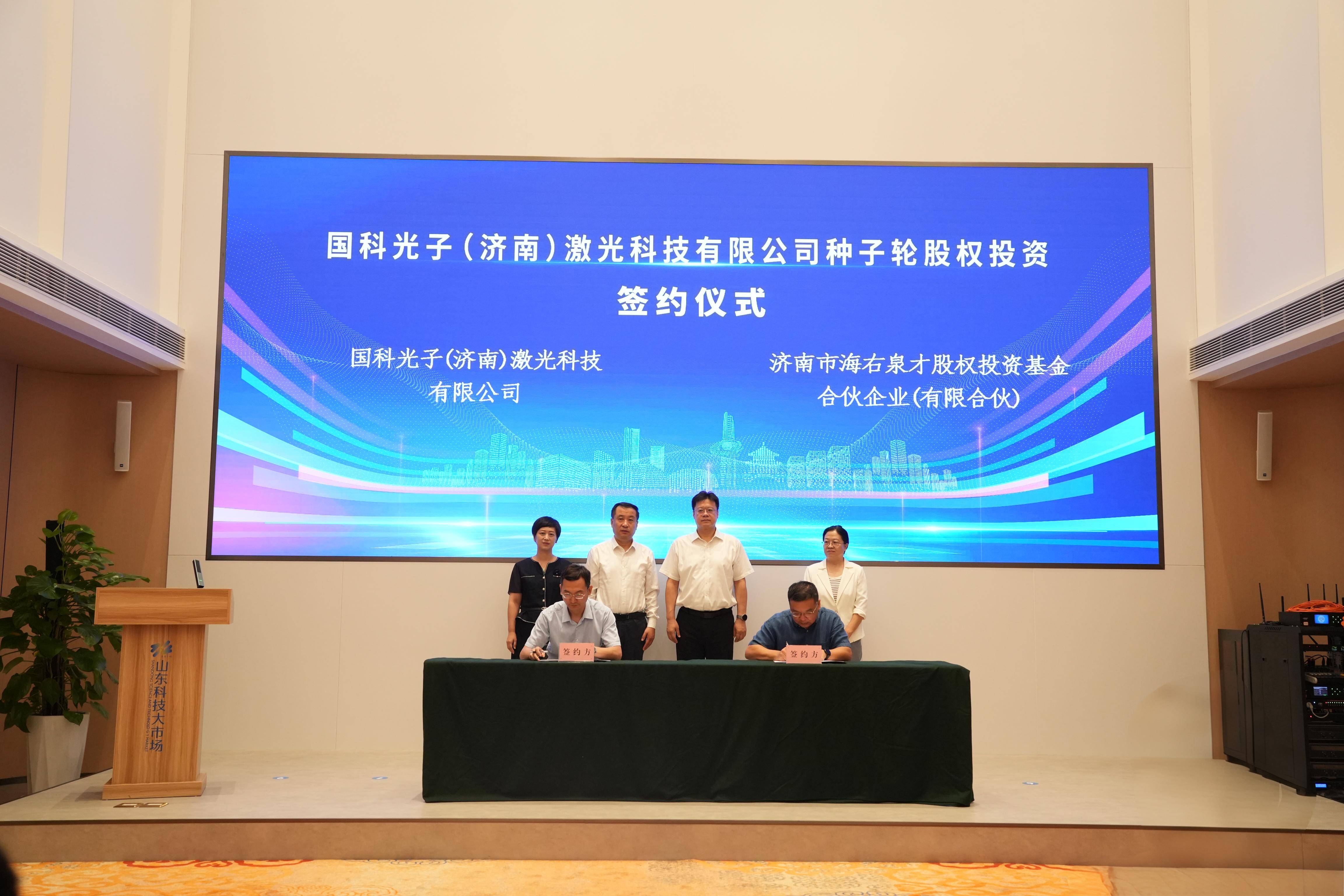 齐鲁网·闪电新闻9月4日讯 9月3日,国科光子(济南)激光科技有限公司(简称国科光子)首轮(种子轮)股权投资协议签约仪式在山东科技大市场举行。省科技厅副厅长祝恩元,市科技局局长黄波,市财政局副局长房翠萍,济南财金集团副总经理,济南财投董事长李鑫等出席活动并见证签约。活动现场,济南财金集团所属济南财投作为领投方,通过旗下海右人才基金与国科光子签署基金投资协议。同时,天津宏成益真科技有限公司也市场化跟投了该企业。