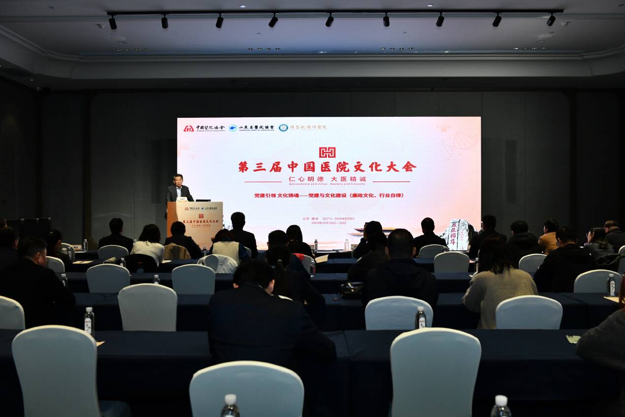 斯文在兹,盛会启幕。2025年10月24日至26日,由中国医院协会与山东省医院协会共同主办、山东省医院协会具体承办的第三届中国医院文化大会在山东曲阜尼山成功召开。大会以“仁心明德 大医精诚”为主题,共商新时代医院文化建设大计,共谋高质量发展人文路径。国家卫生健康委新闻发言人、宣传司副司长杨金瑞;中国医院协会常务副会长毛群安;健康报社有限公司党委书记、董事长许培海;中国医院协会副会长王笑频;山东省卫生健康委一级巡视员牟善勇;济宁市人民政府副市长、党组成员朱贵友;复旦大学哲学学院教授王德峰;上海市医院协会会长陈建平;山东省医院协会会长赵升田;中共中央党校(国家行政学院)科研部副主任洪向华;山东省卫生健康委原党组成员、副主任、一级巡视员、山东省医院协会名誉会长秦成勇;中国医师协会副会长、山东省医师协会会长 孙洪军;清华大学社会科学学院医学社会学研究中心主任景军;中南大学湘雅医院党委书记张欣;山东大学齐鲁医学院党工委书记,齐鲁医院党委书记陈鑫;山东第一医科大学党委副书记,附属省立医院党委书记吴向东;山东中医药大学附属医院党委副书记、院长邓华亮以及来自全国各级卫生健康部门、省级医院协会、各级各类医疗机构管理者、医疗卫生工作者及文化学者等近千人齐聚一堂,共同见证这场医院文化盛会的开幕。中国医院协会副会长兼秘书长田家政主持开幕式。
