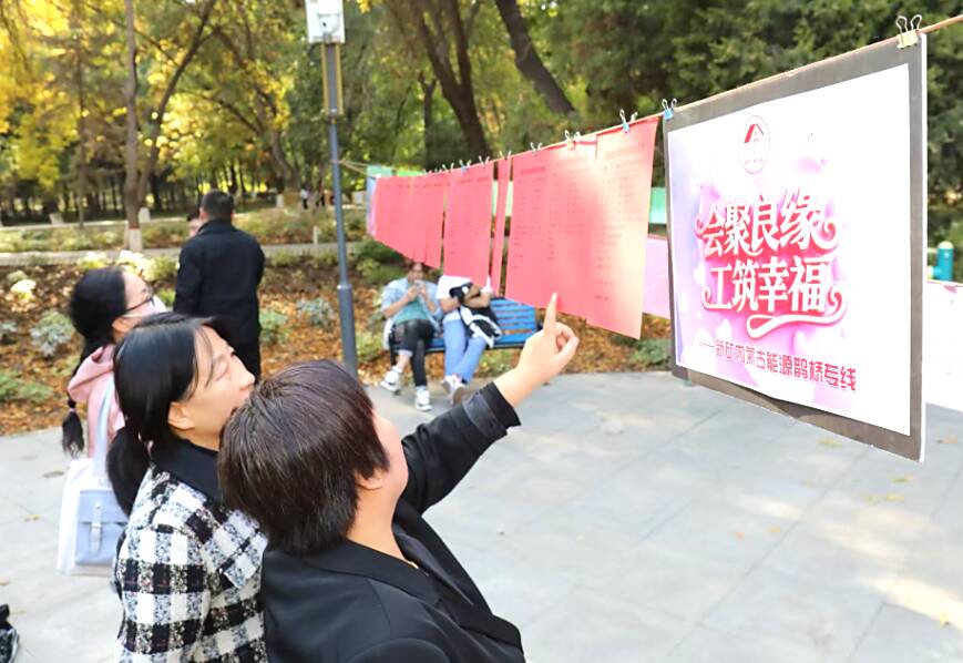 齐鲁网·闪电新闻10月29日讯 “这小伙子不错,年龄相当,还是研究生学历。”“这姑娘漂亮,工作也很稳定……”近日,银川市中山公园里热闹非凡,新矿内蒙古能源精心策划的“‘会’聚良缘·‘工’筑幸福”大学生相亲会吸引了许多行人驻足观看。来自山东能源新矿集团内蒙古能源权属单位的单身青年们汇聚一堂,在轻松愉快的氛围中寻觅良缘。