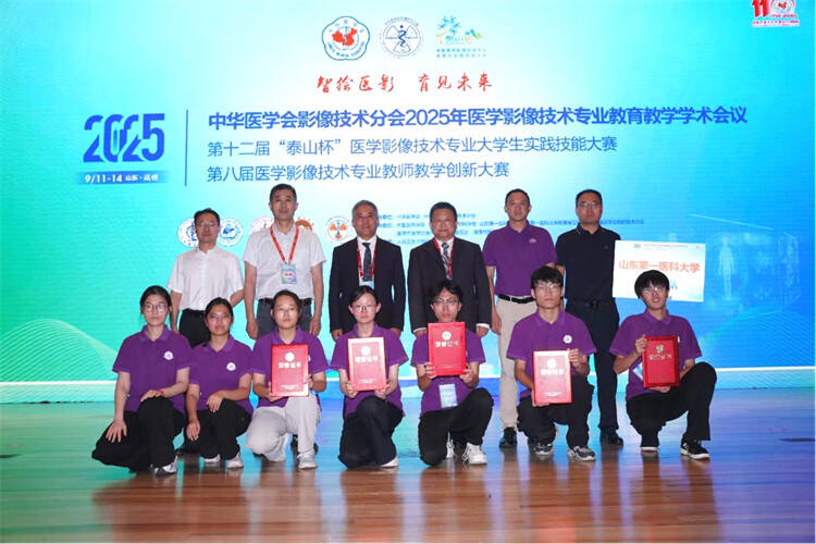 广大学子在学习中练就过硬本领,在实践中展现强劲竞争力:2019级本科生王淇发表2篇高水平SCI论文,并考入北京协和医学院,2021级本科生钟天正以第一作者在核医学顶刊《欧洲核医学与分子影像杂志》发表成果;连续在“泰山杯”全国医学影像技术大赛中斩获单项及团体奖项,2022级医学影像技术专业本科生孙誉宁,斩获今年“泰山杯”医学影像诊断单项桂冠,更带领团队勇夺“团体一等奖”,实现个人与团队双冠佳绩。2022级本科生陈思贤牵头项目获2024年中国国际大学生创新大赛山东赛区金奖、2025年“挑战杯”省赛一等奖,实现历史突破。
