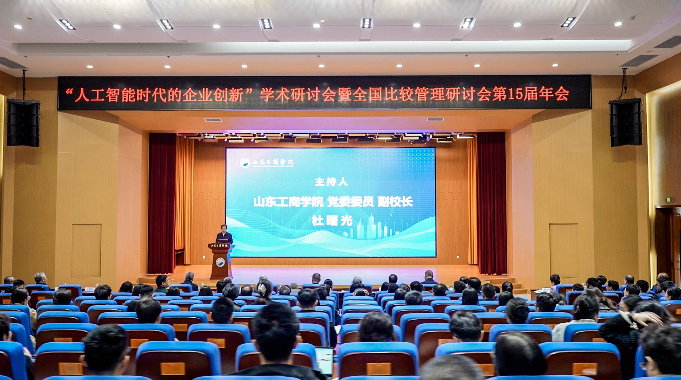齐鲁网·闪电新闻11月3日讯 近日,“人工智能时代的企业创新”学术研讨会暨中国企业管理研究会国际比较管理专业委员会第15次年会在山东工商学院举行。来自全国三十余所高校和科研机构的近百位专家学者齐聚一堂,共同围绕AI驱动组织变革、数据要素赋能、数字化转型等前沿议题展开深入交流。山东工商学院党委副书记、校长陶虎,中国社会科学院工业经济研究所企管研究室高中华主任,中国企业管理研究会国际比较管理专业委员会主任委员高闯教授分别致辞。山东工商学院党委委员、副校长杜曙光主持开幕式。