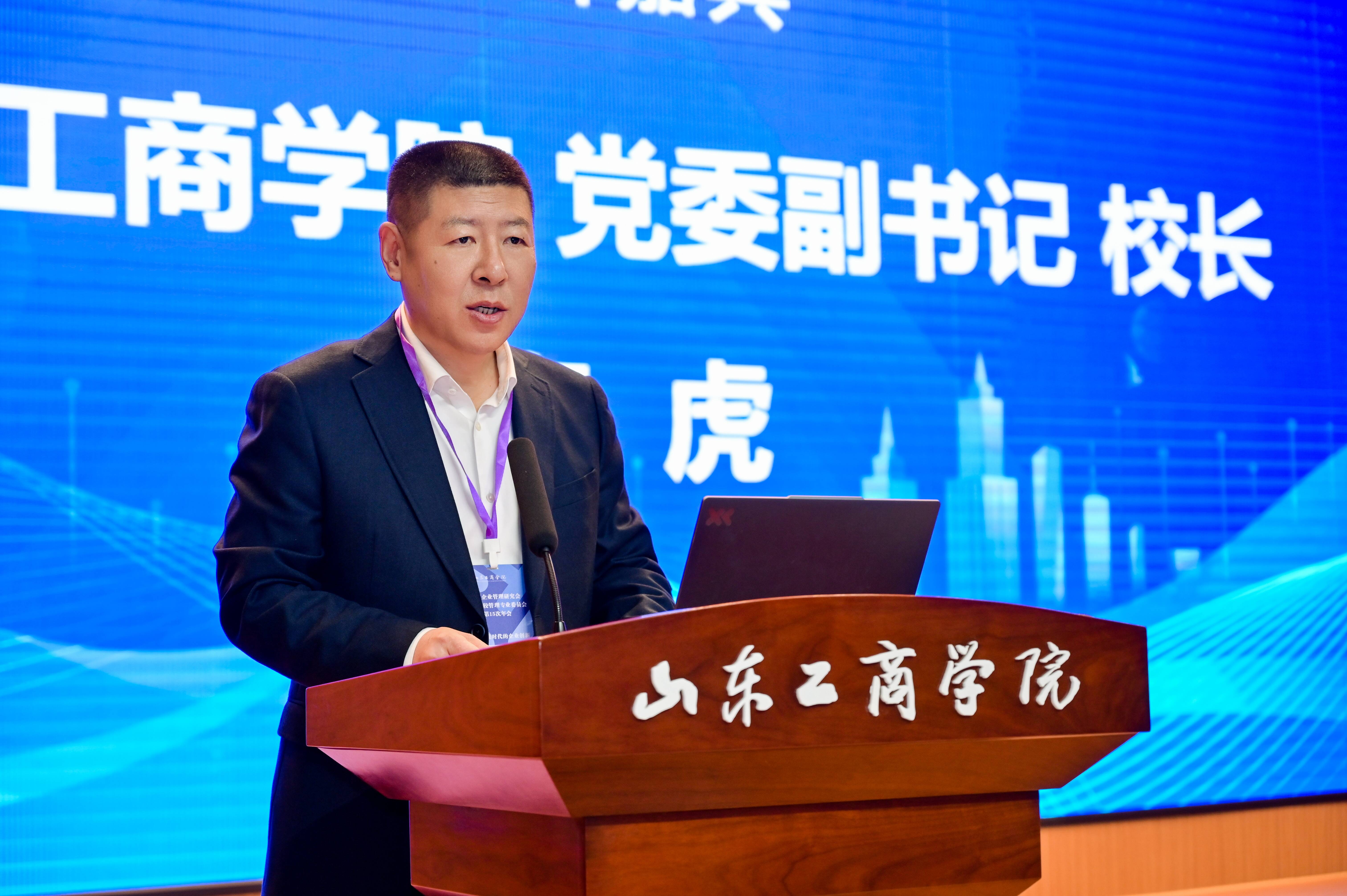 陶虎在致辞中向与会嘉宾表示热烈欢迎,并详细介绍了山东工商学院在“工商管理+AI”交叉学科领域的布局与成效。他指出,山东工商学院积极顺应人工智能发展趋势,推动管理学与人工智能的深度融合,已在课程建设、科研创新及人才培养等方面取得阶段性成果,为服务区域经济数字化转型提供了有力支撑。