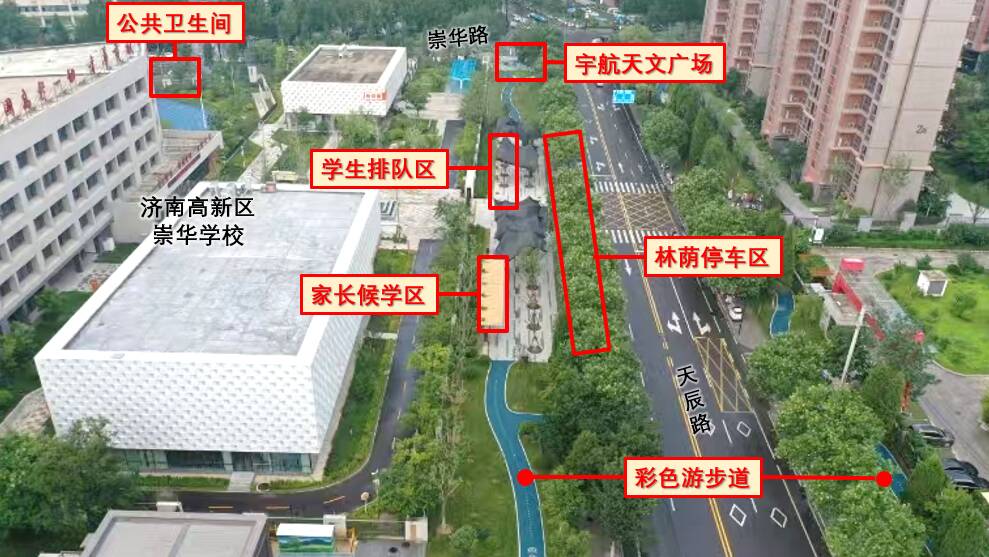“三件套”便民设施因地制宜利用学校周边街角、闲置地块等“金边银角”,通过释放道路空间、盘活闲置资源,建设形成集休憩、等候、科普功能于一体的便民空间。目前,高新区崇华学校、奥体中路学校等周边区域已率先建成并投入使用。