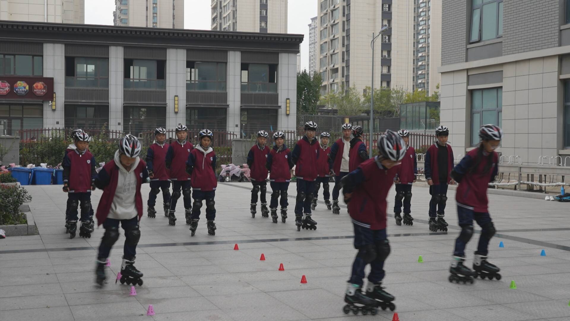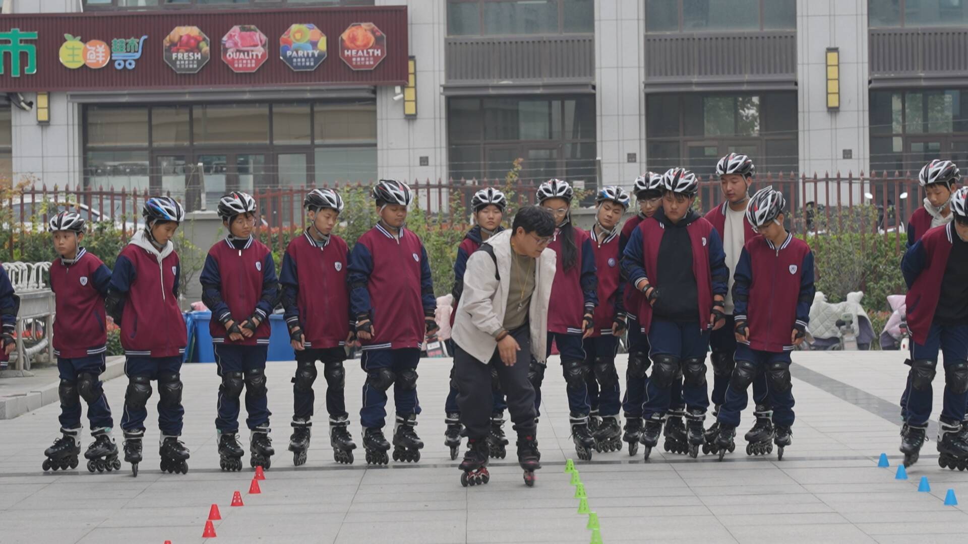 速度与平衡交织,汗水与欢笑并存。在轮滑课堂上,学生们脚踏轮滑鞋,在老师的专业指导下,展开“绕桩”训练。他们灵巧地穿梭于一个个障碍桩之间,身体微倾,精准控制着脚下的滑轮,流畅地画出一道道优美的弧线。