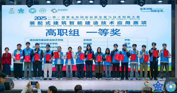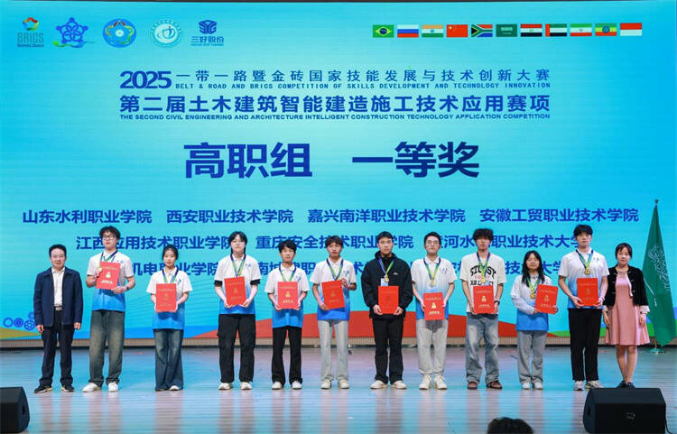 齐鲁网·闪电新闻11月5日讯 近日,2025一带一路暨金砖国家技能发展与技术创新大赛“土木建筑智能建造施工技术应用”“装配式建筑智能建造技术应用”两大赛项全国总决赛相继落下帷幕。山东水利职业学院参赛学子在两个赛项中表现卓越,凭借扎实的专业素养与出色的实践能力,双双斩获高职组一等奖,学院荣获“最佳组织奖”,多位指导教师获评“优秀指导教师”,充分彰显了学院在智能建造领域的教学成效和办学实力。