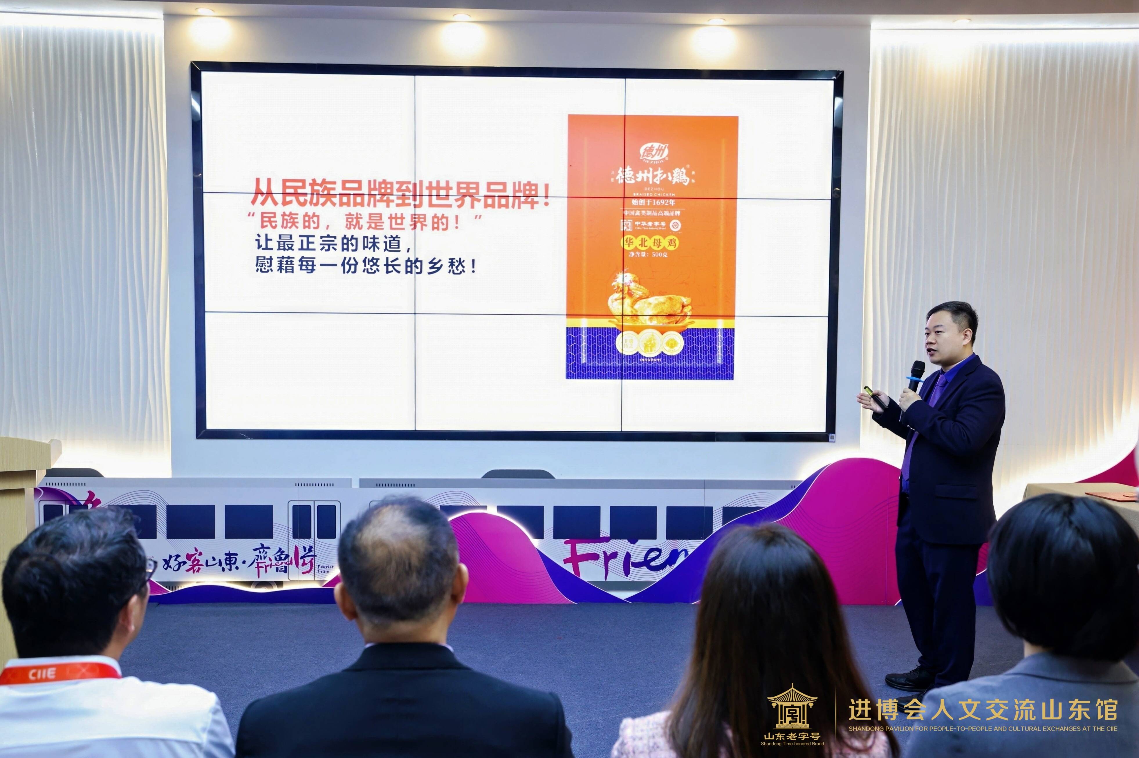 活动伊始,山东德州扒鸡股份有限公司总经理崔宸介绍了“传承1956华北母鸡”系列新品。产品采用生态散养模式,注重自然喂养与健康营养,兼顾传统工艺与现代健康饮食需求。济南鲁味斋食品有限责任公司董事长王剑辉发布了“山东卤味系列渠道款产品”,依托传承128年的老汤技艺,结合现代流通渠道特点,打造具有山东特色的标准化卤味食品。