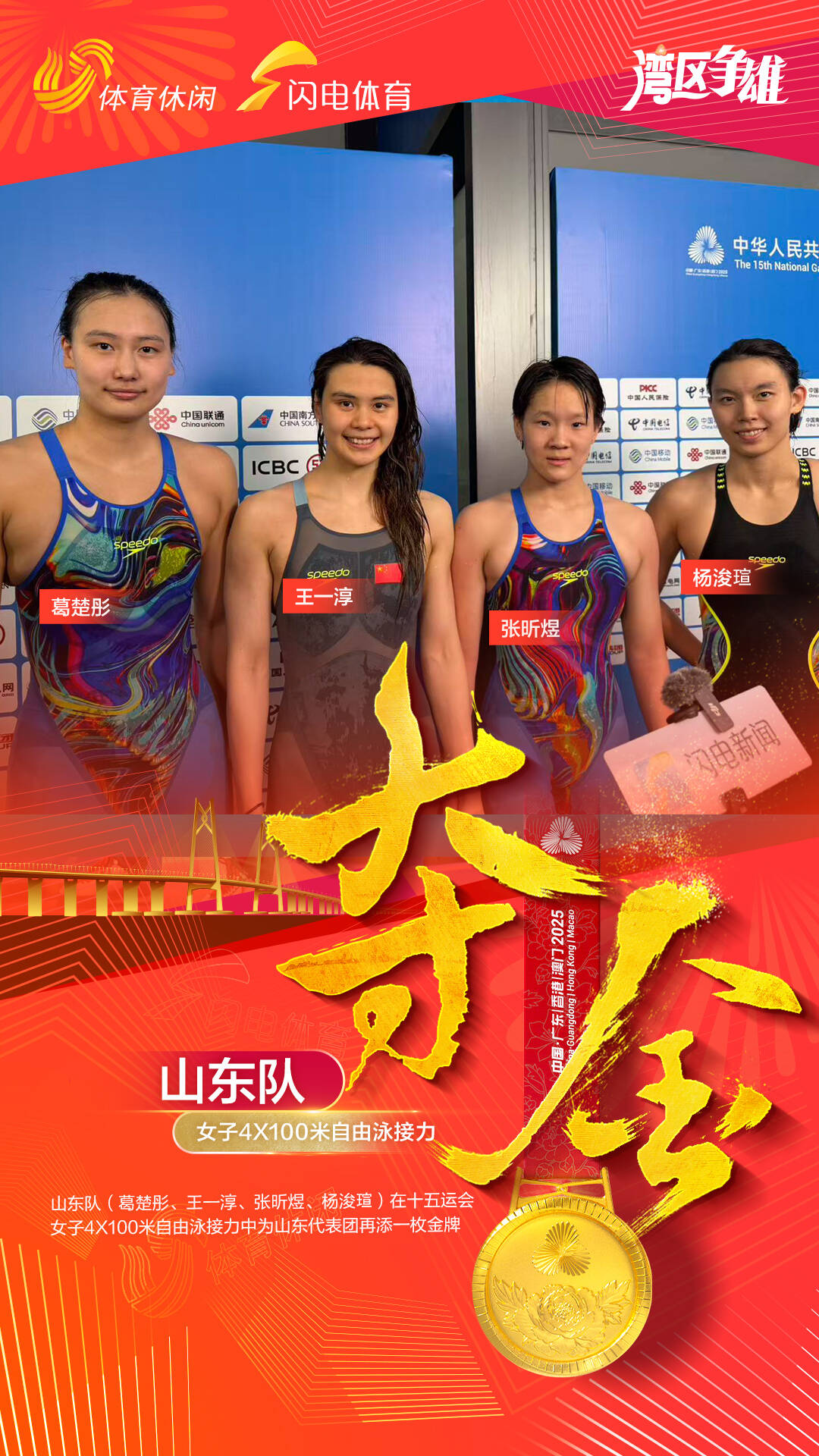 闪电体育11月10日讯 11月10日,山东运动员分别以大胜、完胜、全胜、险胜的方式获得了四块金牌,健儿们的表现够山东!