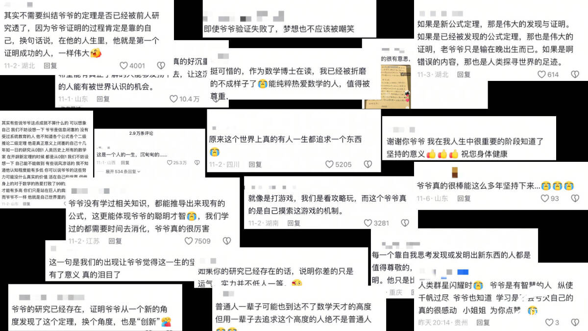 当张芷维把评论区的暖心评论读给李培盛时,年过七旬的李培盛却有些不好意思。他说感谢各位网友的夸奖,也希望网友能跟他一样热爱数学,“搞出点成绩来”,并表示自己不害怕被挑刺。“有用就是有用,没有就是没有。挑出刺就说明你这个东西不完美,有毛病、有缺陷、有漏洞,你把它修改以后,把它完备一下,这不就好了吗?这对你自己有进步啊。”