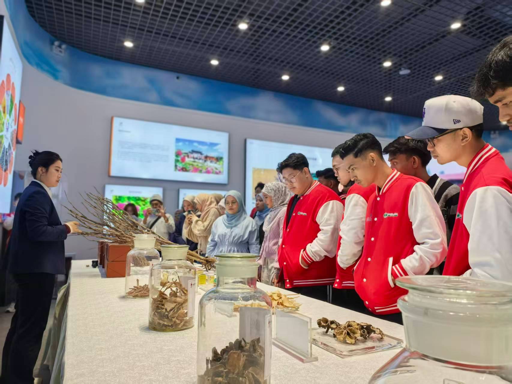 步入尧舜牡丹产业园展厅,牡丹的多元价值在眼前徐徐铺展——从入药养生的牡丹皮、营养丰富的牡丹籽油,到调味增香的牡丹花瓣、清甜回甘的牡丹花蕊茶,再到融合现代科技的牡丹护肤精品,每一件产品都承载着匠心工艺与自然馈赠。“原来牡丹不仅可赏,更可为食、为药、为美!”马来西亚学子纷纷驻足细观,在惊叹中重新认识了这朵“百花之王”的深厚内涵。