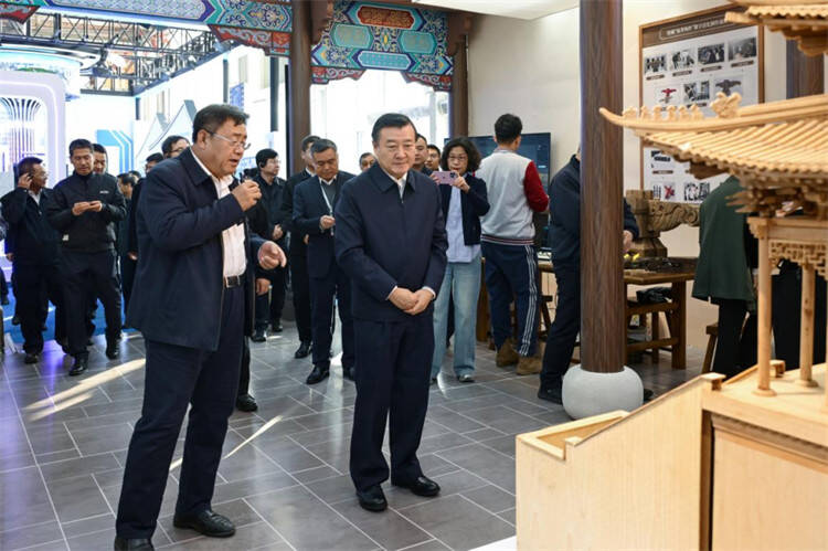 11月6日上午,省住房和城乡建设厅厅长王玉志,党组成员、副厅长、一级巡视员王润晓到展区观摩指导。王玉志一行重点了解了展区的策划理念与布展特色,对学校将实物展陈、数字解析、互动体验、成果展示相结合,生动呈现教学科研成果的做法给予高度评价。6日下午,省住房和城乡建设厅党组成员、副厅长(正厅级)侯晓滨带队到展区考察观摩。侯晓滨详细观看和了解了展陈的图片、构件、模型、技艺演示、文创产品,鼓励在场师生继续深度发掘、深入研究、深切实践,不断拓展相关领域,创出更多的优秀成果。