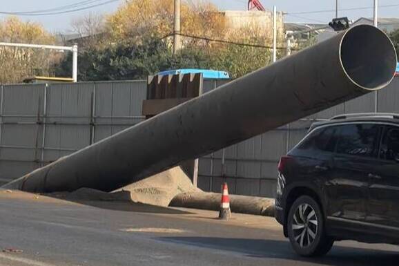 11月12日,记者实地探访济微路公铁立交至南北大桥路段。该路段全长约4公里,多处设置施工围挡,施工痕迹随处可见,现场还存在不少安全隐患:公铁立交桥下,一处开挖的土坑周边未设置防护围挡;不远处,一枚井盖已严重破损,露出洞口;车行道边缘一排四孔排水井井盖集体“失踪”,不少车辆紧邻井口通行;道路中间多处设置围挡,一处围挡外的水泥管道裸露在外,污水顺着管道流到路面,形成一片积水区域;更令人担忧的是,一根大型管道倾斜着放在道路中央的围挡外,仅由几个交通锥围住。