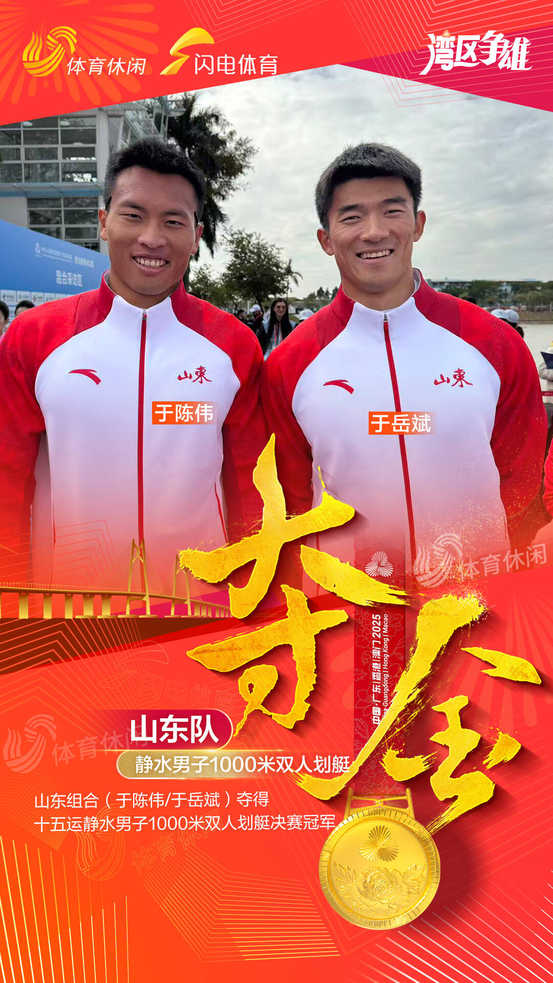 真正的压轴之战落在男子1000米双人划艇项目。山东组合于岳斌和于陈伟再度携手,最终以3分32秒522第一个划过终点,为山东代表团再添一金。这枚金牌不仅为山东皮划艇静水项目的全运征程画上完美句号,也为山东水上军团本届赛事收官落下了浓重一笔。