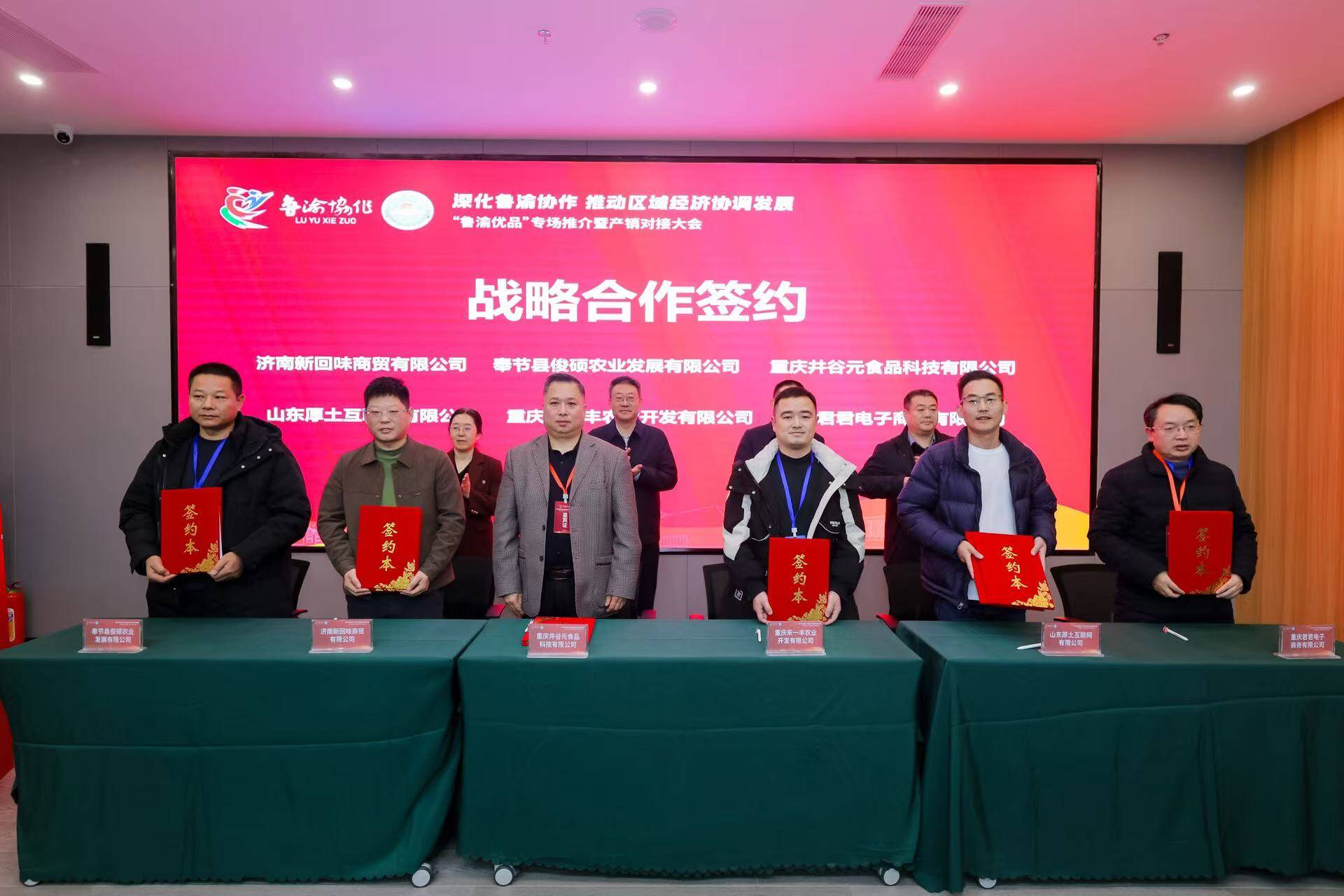 活动期间,“鲁渝优品”专场推介暨产销对接大会举行,济南新回味商贸有限公司与奉节县俊硕农业发展有限公司、重庆市井谷元食品科技有限公司,山东厚土互联网有限公司与重庆禾一丰农业开发有限公司、重庆君君电子商务有限公司分别进行战略合作签约,为鲁渝产销协作注入新动能。