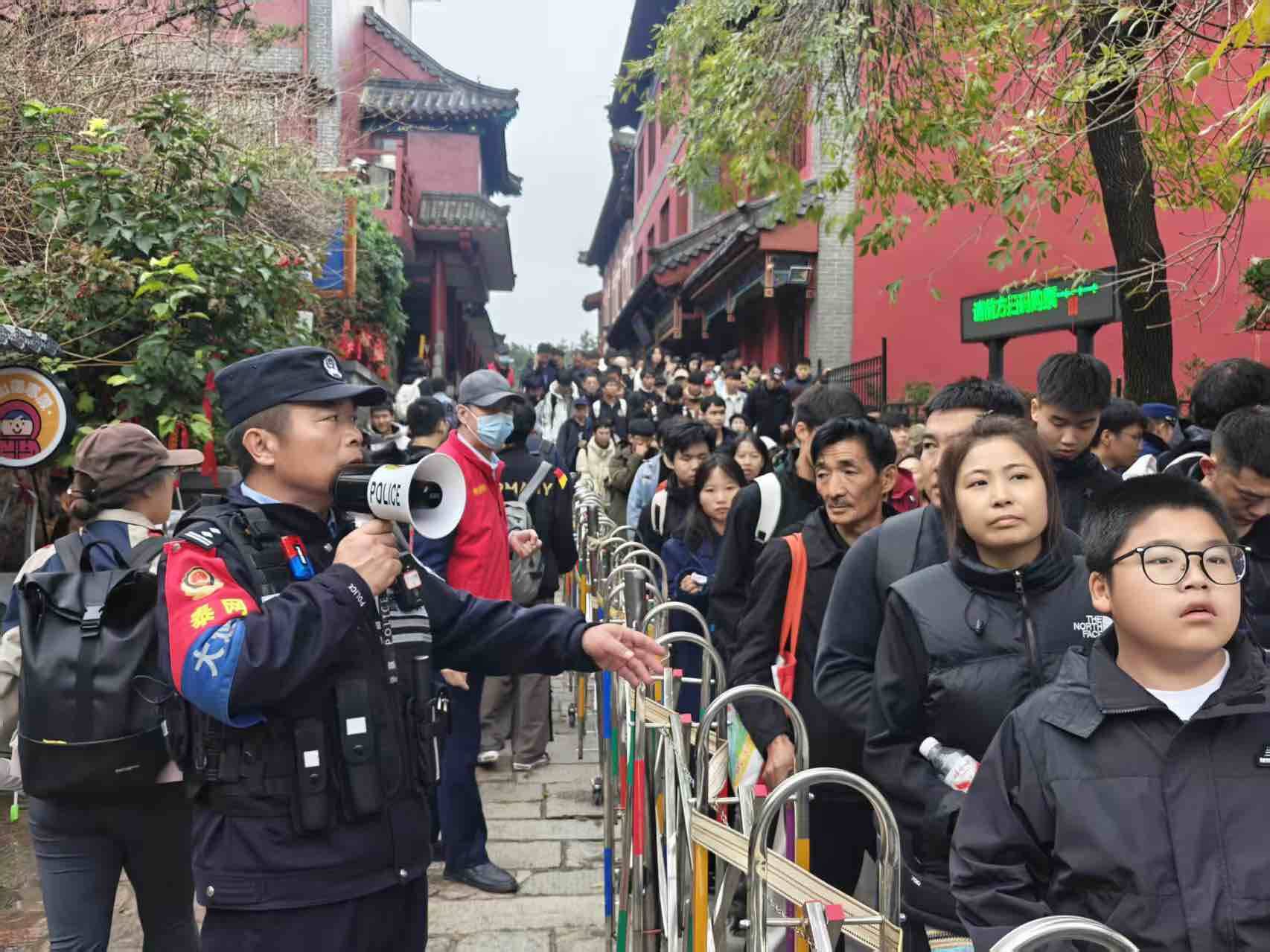 济南迎来观泉游湖大客流,济南公安一系列硬核“黑科技”纷纷上线助力节日安保。在大明湖、千佛山等景区,智能机器人“历小警”惊喜亮相,不仅能与游客轻松对话互动,还成了小朋友们围观的“小明星”。会爬山的“机器狗”身手灵活,不仅能陪民警一起巡逻,还能深入复杂、狭窄区域执行特殊任务,安全感瞬间拉满。在趵突泉旁,济南首台多功能警用登高巡逻车也成为“新晋网红”,站得高、看得远、实时监测人流,及时发出安全提示,甚至还成了游客的“最佳拍照搭档”,贴心服务超受欢迎。在槐荫区人流密集的商圈和景区上空,无人机巡逻队也悄然上线,凭借高空视野广、机动性强的优势,快速响应各类突发状况,守护无声却有力。在德州乐陵影视城、乐陵拾光沉浸式街区两大文旅新地标,随处可见乐陵公安民警的身影,让每天近3万人的大客流有了平安保障。面对求助,公安民警一帧一帧查看监控找回游客手机;面对行动不便的老年游客,公安民警真情“摆渡”解决难题,所有执勤民警用每天超过2万步的足迹守护着美景,用肩膀筑起一道安全屏障,用真情守护游客的平安喜乐。