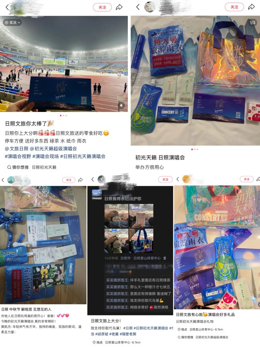 在社交媒体平台上,山东海洋文旅集团送上的“宠粉礼包”获乐迷广泛称赞,“贴心、用心”成为人们分享感受的高频词。发力“文旅商”融合,活动的品牌支持方联动加持:内蒙古蒙牛乳业(集团)股份有限公司为艺人提供现场饮品;日照岚山茶叶有限公司精心筹备,将日照绿茶分装打造为初光天籁“专属茶礼”;日照水之莲天然矿泉水有限公司定制了初光天籁袋装水。此外,山东海洋文旅集团特别定制荧光棒、雨衣、湿巾、纸巾、明信片等,每件周边都融入“初光天籁”视觉元素与品牌理念,让“宠粉礼包”成为可珍藏的城市文化载体。