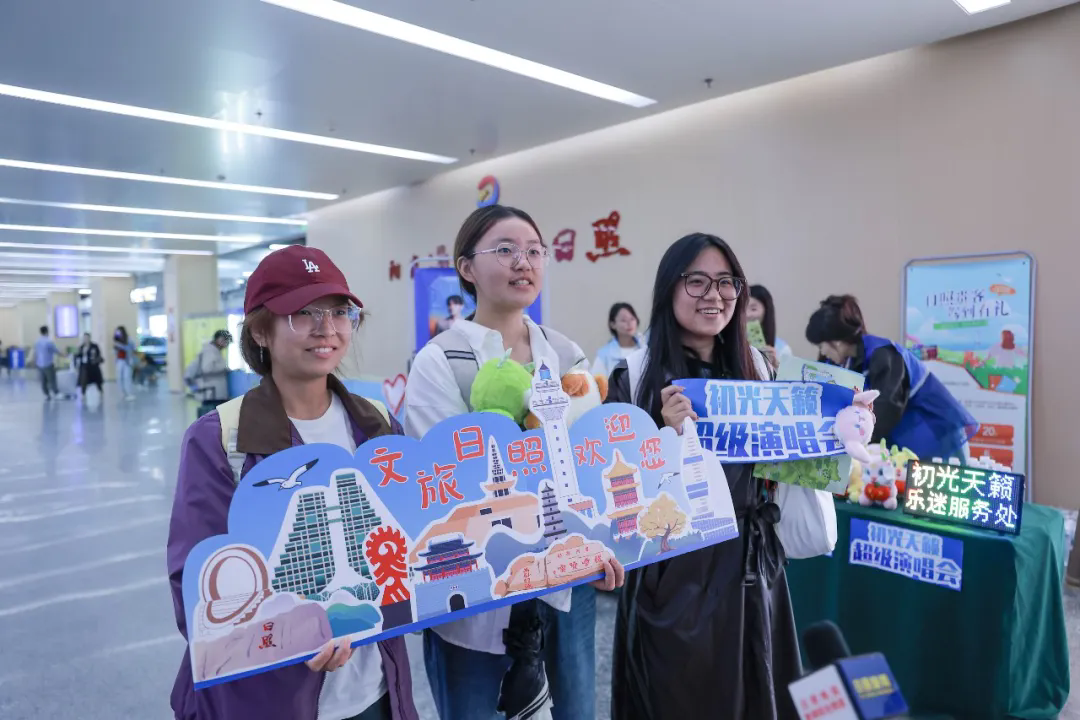 当日,大批观演乐迷陆续抵达,日照市文化和旅游局、山东海洋文旅集团组织志愿者前往日照西站,用热忱的拥抱迎接全国各地的乐迷。