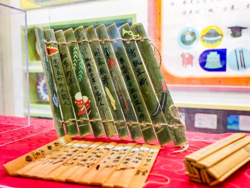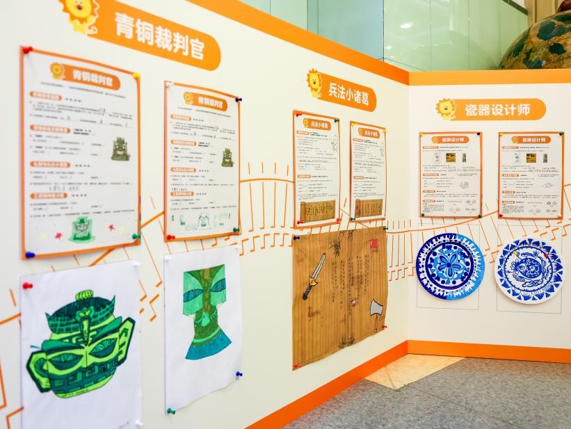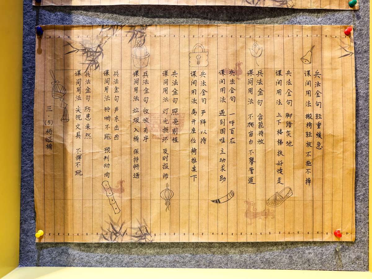 “兵法小诸葛” 在银雀山汉简展区,他们热血沸腾地诵读经典语句,认真甄选可用于“安全兵法册”的智慧箴言。“瓷器设计师”在清代郑燮《双松图轴》和琳琅满目的瓷器前驻足,用心感受古典美学,描摹青花瓷的经典纹样。