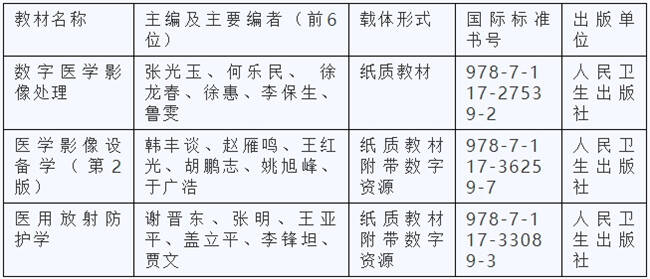此次3部教材入选,既是对学院教师团队编写能力与学术水平的高度肯定,也标志着学院在教材建设领域实现新突破,进一步夯实了教育教学核心资源基础。截至目前,山东第一医科大学放射学院已有6部教材获评山东省普通高等教育一流教材,包括首批入选的韩丰谈教授主编的《医学影像设备学》,第二批入选的王鹏程教授主编的《放射物理与辐射防护》和鲁雯教授主编的《医学电子学基础》。