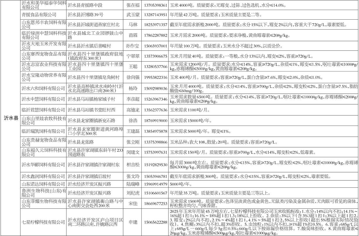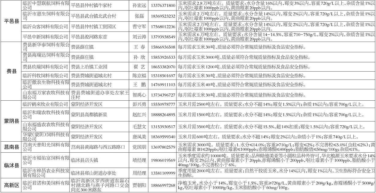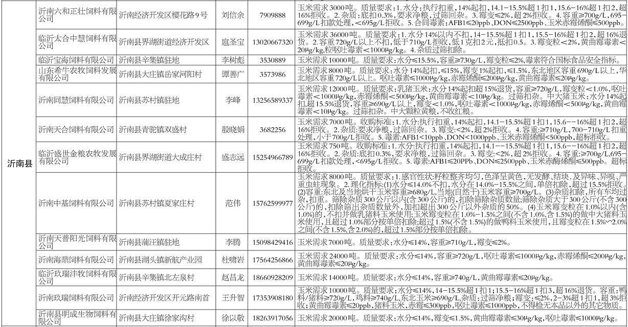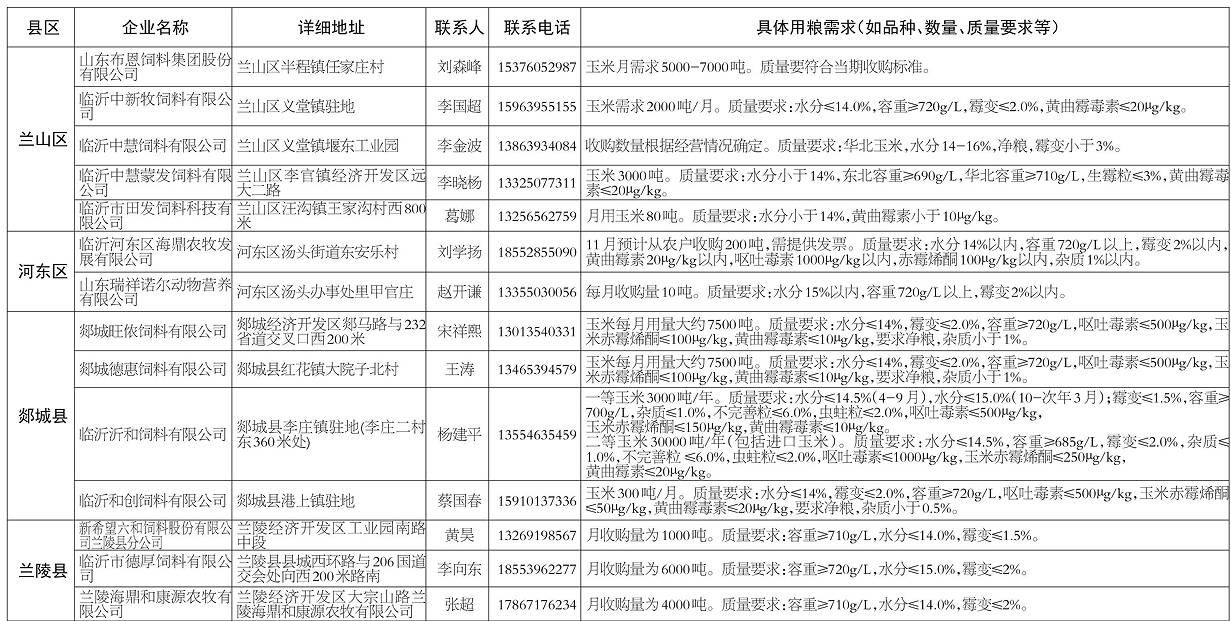 齐鲁网·闪电新闻10月17日讯 为方便群众就近售粮,10月17日,临沂市粮食和储备局会同临沂市农业农村局(市畜牧兽医局)、临沂市工业和信息化局对以玉米为原料的加工转化企业进行了摸底,现将企业信息公布如下。
