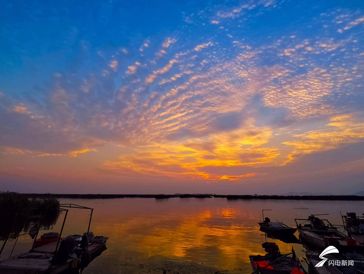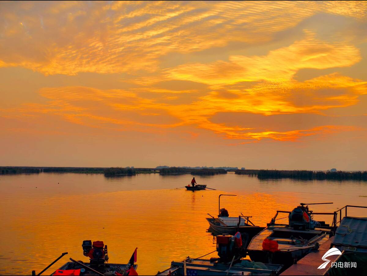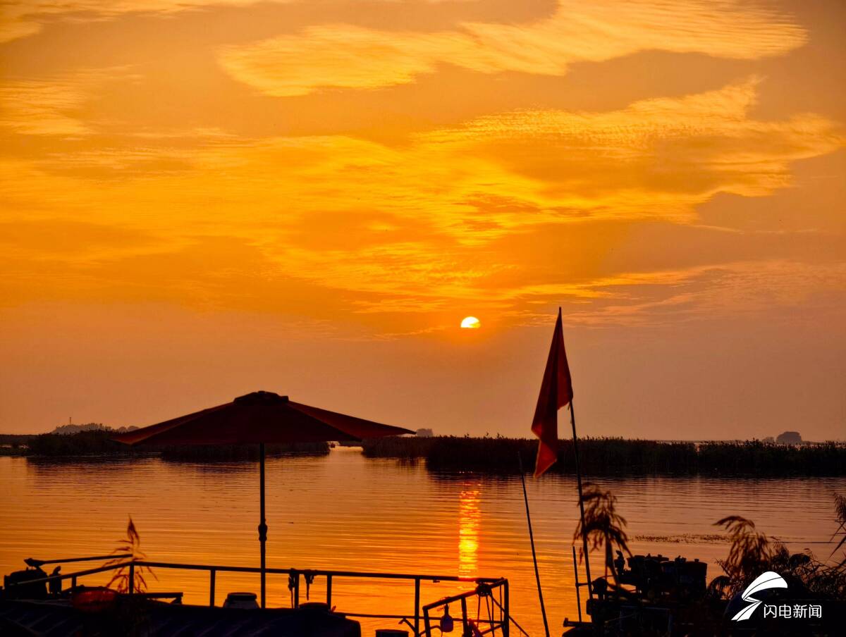 齐鲁网·闪电新闻10月20日讯 深秋时节的东平湖,被夕阳的温柔包裹。落日余晖将澄澈的湖水晕染成一片流动的金红,波光粼粼间,宛若天地间铺展的巨幅锦缎,在微风中轻轻荡漾。 岸边的芦苇荡褪去了青涩,换上赭黄的盛装,穗絮在暮色中轻摇。几叶渔舟载着满满的收获,从金波深处缓缓驶来,与天际的霞光交相辉映,为这静谧的美景添了几分灵动。