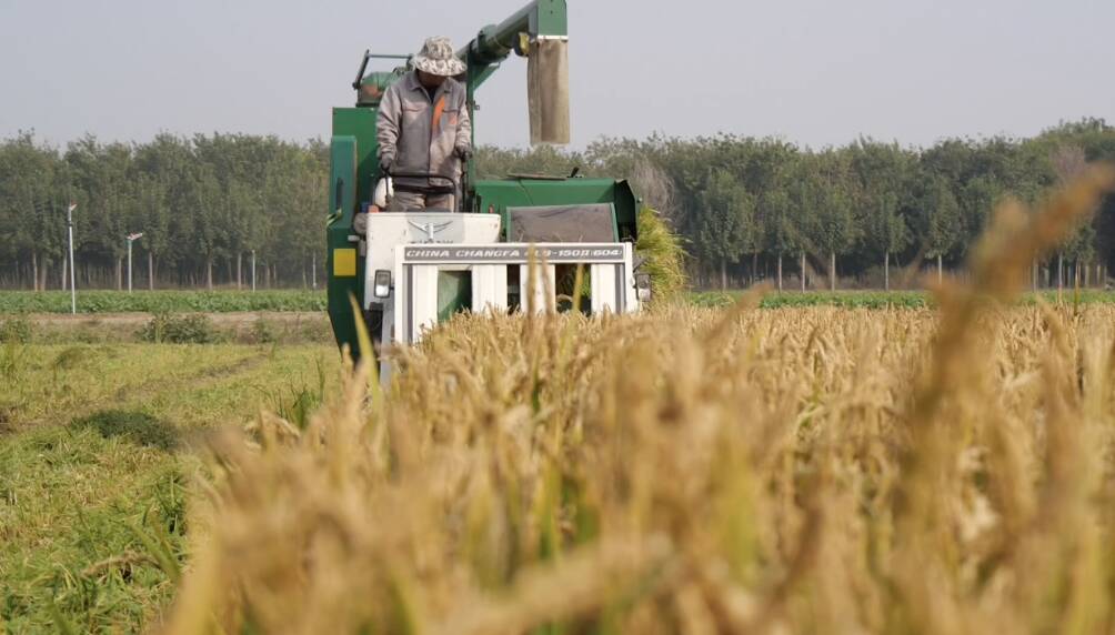 肥城市汶阳镇浊前村党支部书记、村委会主任张同杰介绍:“我们种植的是‘生态一号’这个品种,种了接近300亩,亩产能达到1300 多斤。今年旱稻生长周期长,品质好,每斤卖到5元左右。”