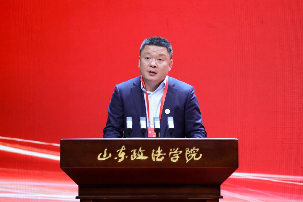 山东理工大学党委书记于红波代表兄弟高校致辞。他高度赞扬了山政七十年来取得的办学成就和对山东高等教育的贡献,回顾了两校深厚的渊源与密切的合作。他表示,愿与山东政法学院进一步加强联系,在建设教育强国的新征程中谱写齐鲁院校合作的新篇章。