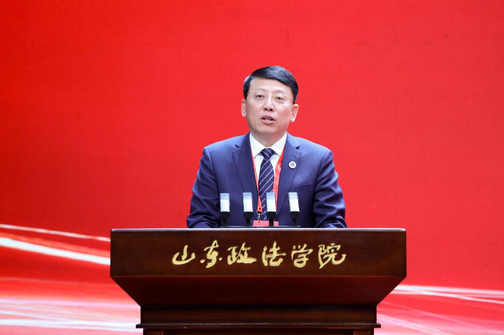 山东政法学院党委书记张祥云以《奋进七秩 再启新程》为题,作学校事业发展报告。他深情回顾了学校自1955年创立以来,从干部培训到成人教育,从普通本科院校到硕士学位授予单位的发展历程。张祥云从“党建引领、红色铸魂”“夯实内涵、特色立校”“德学并蓄、桃李芬芳”“融合赋能、奋发有为”四个方面,系统总结了学校在党的建设、学科发展、人才培养、社会服务等领域取得的显著成就。党的二十届四中全会绘就了中国未来五年发展的宏伟蓝图,全面依法治国战略向纵深推进,教育强国、教育强省建设加速推进。站在新的历史起点上,学校将坚持以习近平新时代中国特色社会主义思想为指导,全面贯彻党的教育方针,落实立德树人根本任务,始终做到政治坚定、对党忠诚,为党育人、为国育才,立足特色、争创一流,扎根齐鲁、服务大局,朝着建设新时代高水平政法类大学的目标奋勇前行。