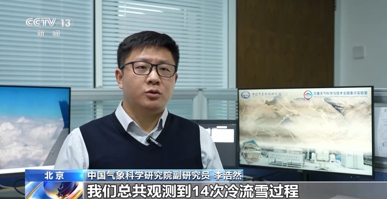 国防科技大学 冷流雪试验研究专家 张云:我们不仅对雪花形状、尺寸、数量、密度等物理特征开展地基和空基的原位观测,还需要借助雷达遥感和数值模式等手段,研究暴雪形成的物理过程。
