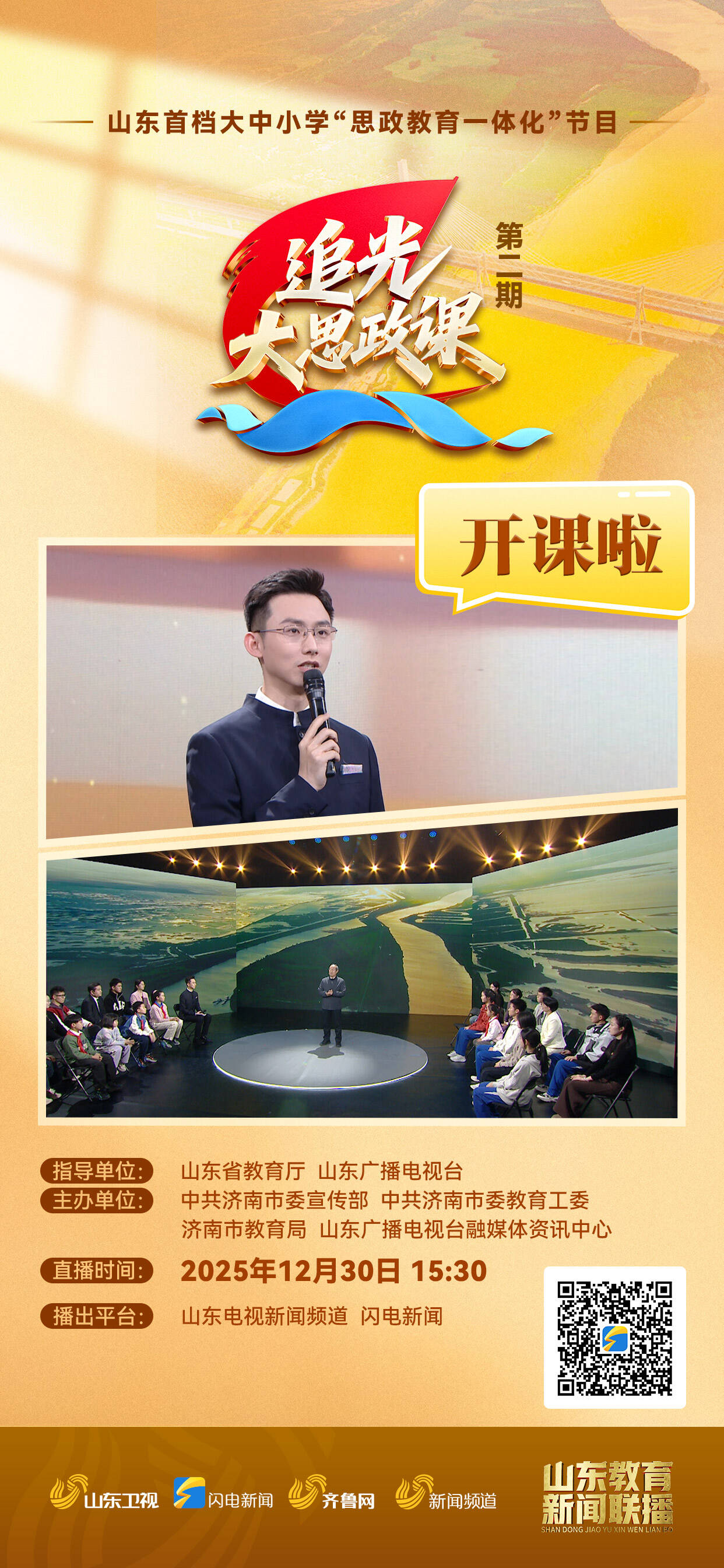 齐鲁网·闪电新闻12月31日讯 12月30日,山东省首档聚焦大中小学“思政教育一体化”专题节目《追光・大思政课》第二期在山东广播电视台新闻频道、闪电新闻客户端等平台正式播出。