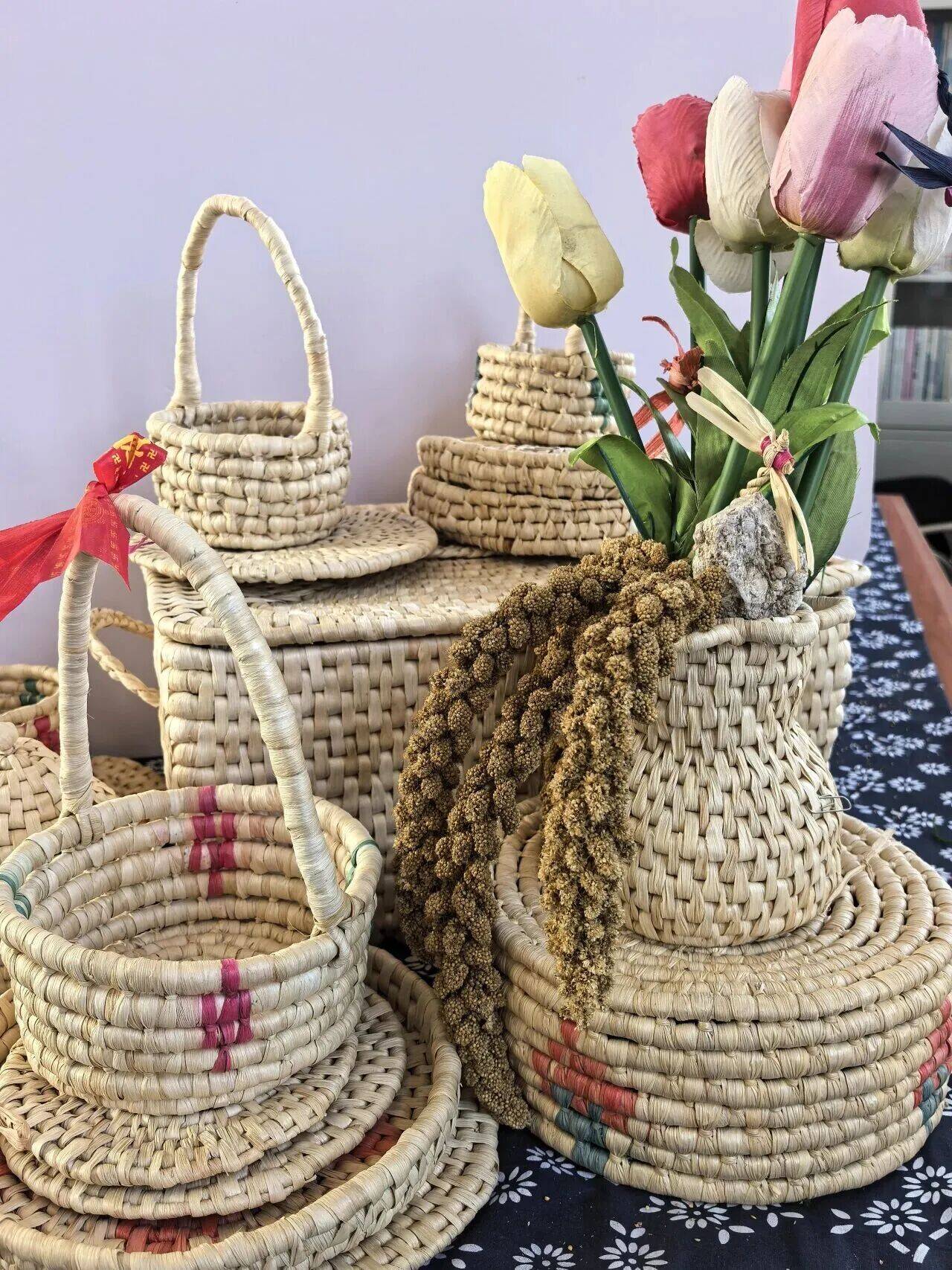 杨家埠文旅事业发展中心西东坡村的手工编织品,每一件都凝结着手艺人的匠心巧思与时光温度。品类丰富多元,既有栩栩如生的编织鲜花、灵动鲜活的动物造型摆件,也有精巧别致的葫芦手作,更有兼具实用价值与观赏美感的各类编织篮。所有产品均采用玉米皮、藤条等天然原料纯手工编织而成,纹理细腻温润、风格质朴清新,既能为家居空间增添浓郁田园气息,又能精准契合日常收纳等实用需求。