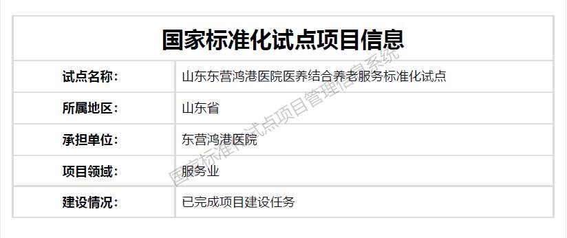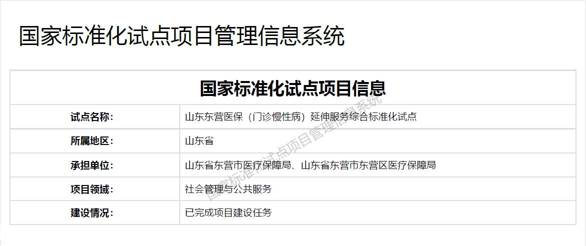 齐鲁网·闪电新闻1月8日讯 (山东经济广播记者张晶晶)近日,国家标准化管理委员会“国家标准化试点项目管理信息系统”公布了国家级标准化试点项目已完成建设任务的证明文件,东营市“东营医保(门诊慢性病)延伸服务综合标准化试点”等5个试点顺利完成项目建设任务。