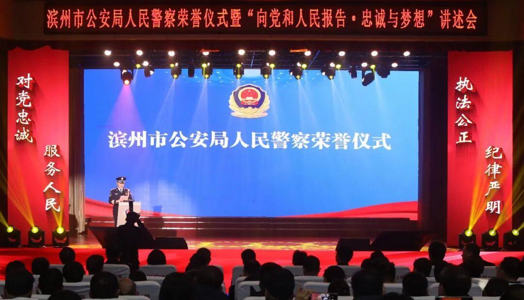 齐鲁网·闪电新闻1月8日讯 警徽熠熠映初心,誓言铮铮铸忠诚。在第六个中国人民警察节即将到来之际,1月7日,滨州市公安局在武警礼堂隆重举行人民警察荣誉仪式暨“向党和人民报告·忠诚与梦想”讲述会,以忠诚作答,向节日献礼。