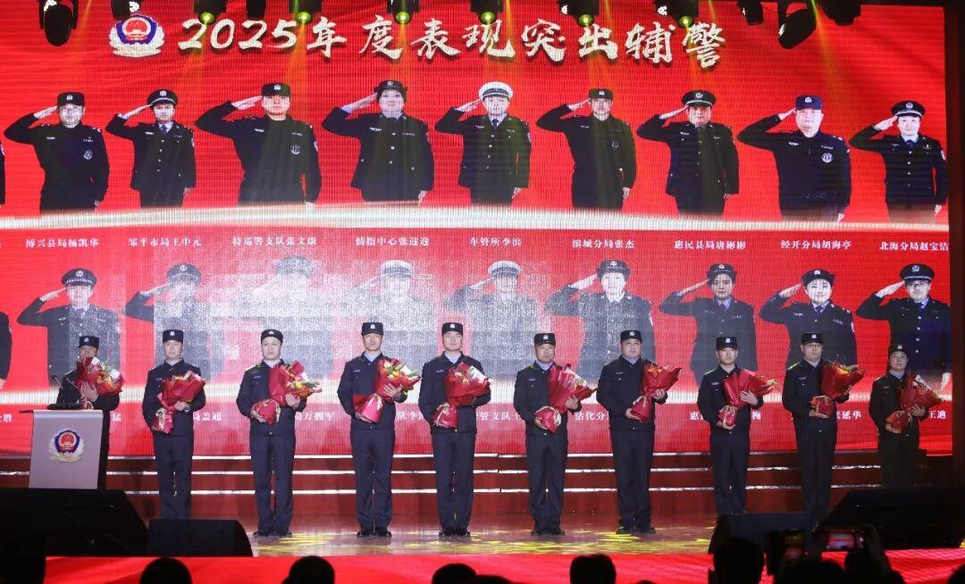 辅警队伍是公安工作的重要辅助力量。活动中,为2025年度表现突出的辅警献花。