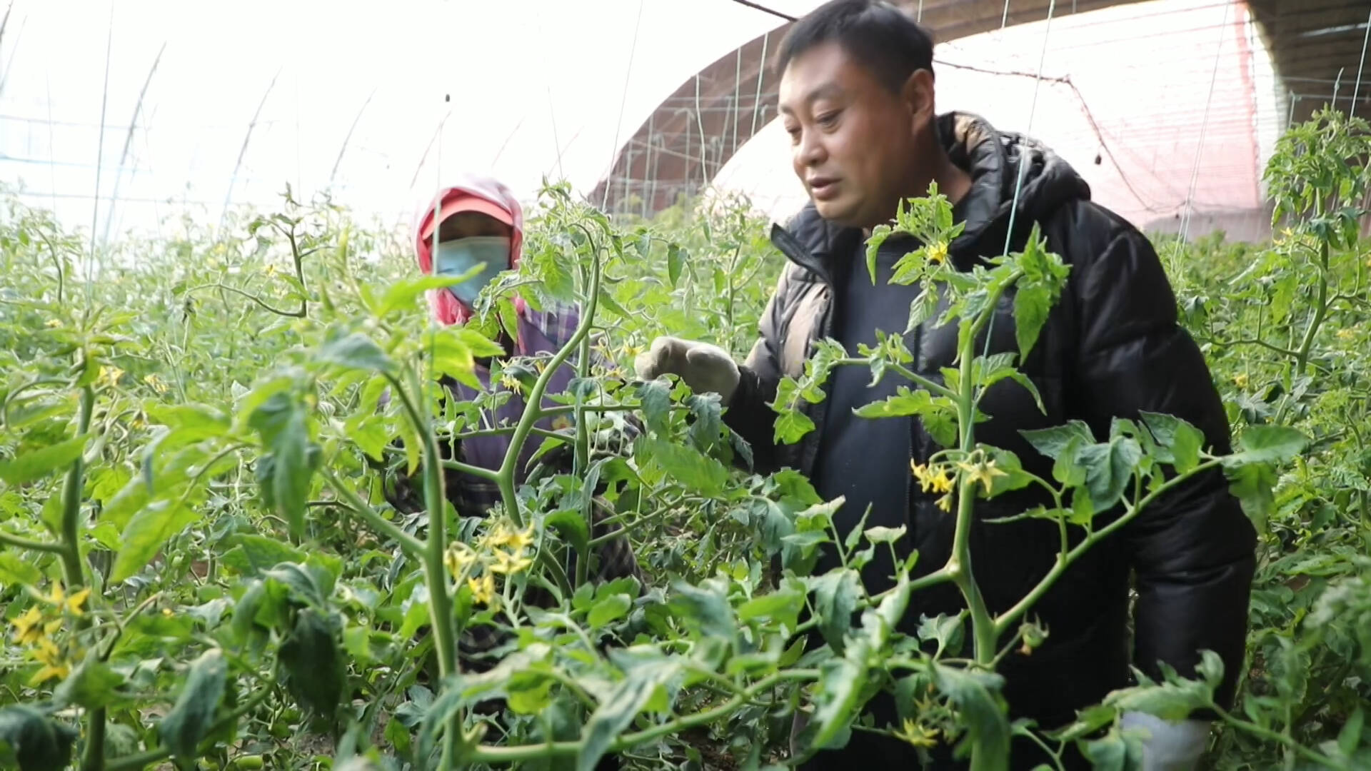 河口区杰灝农业的设施大棚内暖意融融,一派繁忙景象。工作人员正为高糖口感西红柿进行人工授粉,以提高坐果率。
