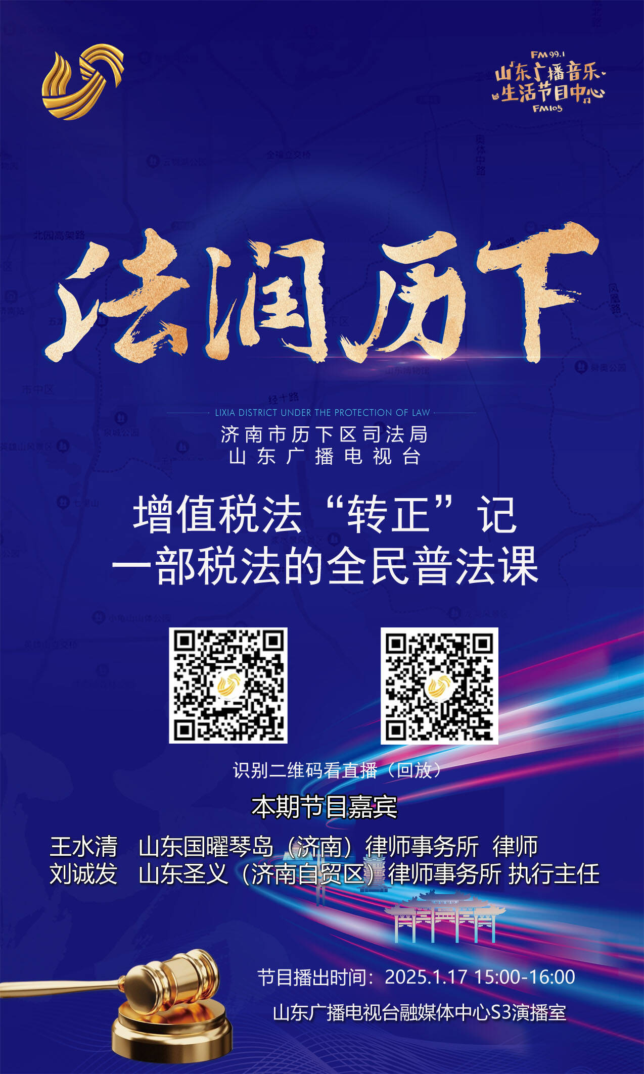 2026年1月1日,《中华人民共和国增值税法》及配套的《中华人民共和国增值税法实施条例》正式施行,原《中华人民共和国增值税暂行条例》同步废止。这一重要变革,标志着我国占全国税收收入39%左右的第一大税种——增值税,从暂行状态正式升级为法定形式,成为我国税收法制建设进程中的里程碑事件。由济南市历下区司法局与山东广播电视台联合制作的融媒体普法节目《法润历下》,特别邀请山东国曜琴岛(济南)律师事务所专职律师王水清、山东圣义(济南自贸区)律师事务所执行主任刘诚发律师做客演播室,围绕“增值税法‘转正’记,一部税法的全民普法课”主题展开深度解读,为公众带来了一堂专业且实用的法律科普课。