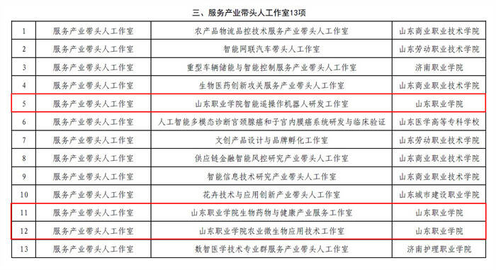 近日,济南市科学技术局公示《济南市深化市校融合发展促进科技成果转化的若干措施(2025版)》(简称“高校20条2025版”)拟立项项目名单,山东职业学院智能制造学院、生物工程学院申报的三个项目全部入选“服务产业带头人工作室”,展现了学校在产教融合、技术服务和高技能人才培养领域的突出实力。
