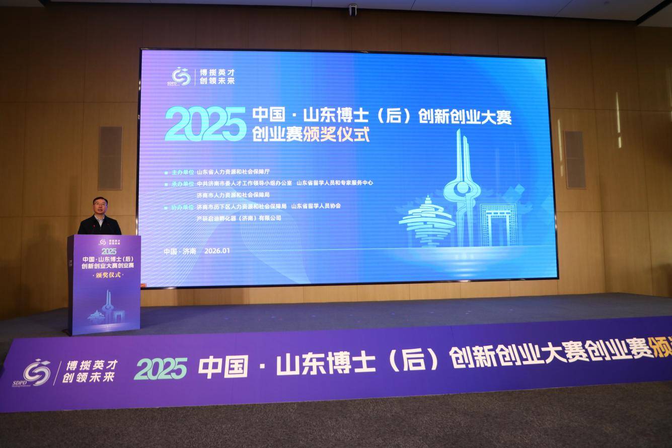 齐鲁网·闪电新闻1月17日讯 2026年1月15日,2025年中国·山东博士(后)创新创业大赛创业赛决赛颁奖仪式在山东省留学人才之家举办。