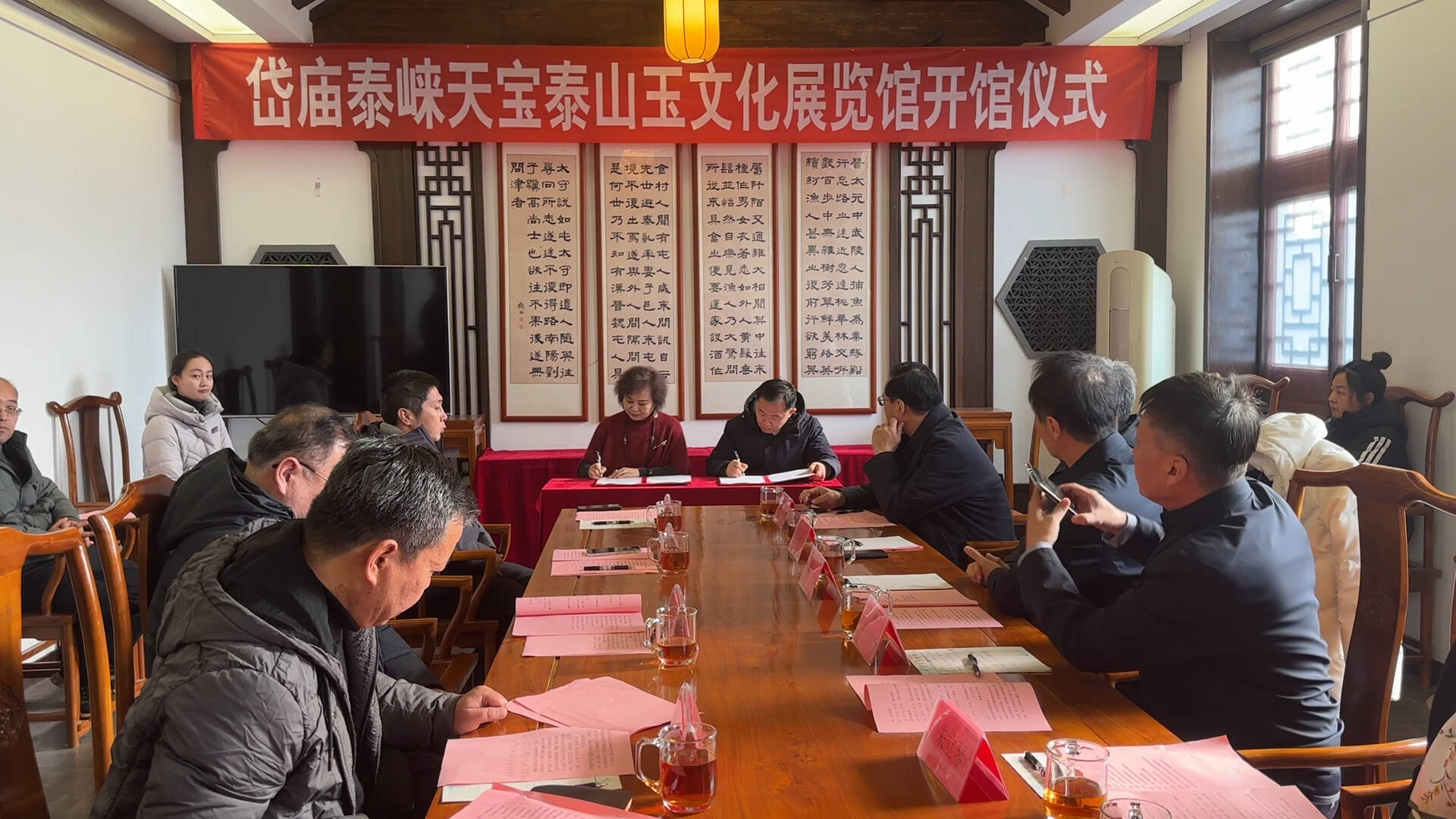 齐鲁网·闪电新闻1月17日讯 1月16日上午,山东省泰崃天宝泰山玉石文化展览馆开馆仪式在泰安市泰山区岱庙景区举行。仪式现场,泰安市博物馆馆长宋洪兵与山东省泰崃天宝泰山玉石文化博物馆馆长李秀兰签署“岱庙文创”合作协议,双方将携手开发兼具泰山文化符号与现代生活气息的文创产品,让文化遗产真正融入群众日常,随后11位嘉宾共同为展览馆揭牌。本次开馆的泰山玉文化展览馆坐落于岱庙西北城墙古老角楼,泰山玉文化展览馆正式亮相岱庙,为这座千年古迹注入全新文化活力。