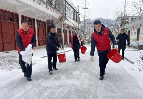 当好“除雪先锋”,迎寒而战脚步不松懈。党员志愿者克服低温路滑等困难,迅速集结,重点面向五保户、独居老人等群体,逐户清扫房前屋后积雪,敲除屋檐冰凌,协助加固雨檐、棚架。同时在村主干道撒布融雪剂,快速打通出村“温暖通道”,保障群众出行安全。