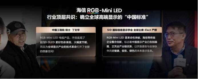 国际信息显示学会(SID)全球总裁严群也给予高度评价:“RGB-Mini LED技术是革命性突破,海信等终端企业整合创新标志着中国显示产业已告别跟随,正凭全产业链优势,以开放姿态与全球伙伴共建健康、极致、绿色的未来显示生态。”