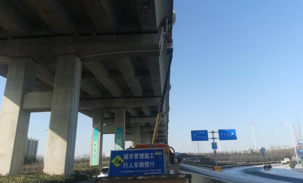 为应对冰凌隐患,采取“机械+人工”“巡查+清理”相结合的方式,对沂河路高架、蒙山路高架等4条高架路、50余座大型桥梁开展不间断排查,组织人员队伍利用高空作业车、长杆等工具及时清除冰凌,并同步疏导桥面排水系统,检查接缝密封,防止次生结冰。作业期间,地面安全人员规范设置警示标识,及时引导交通,形成“空中清险、地面护安”的协同防护体系。